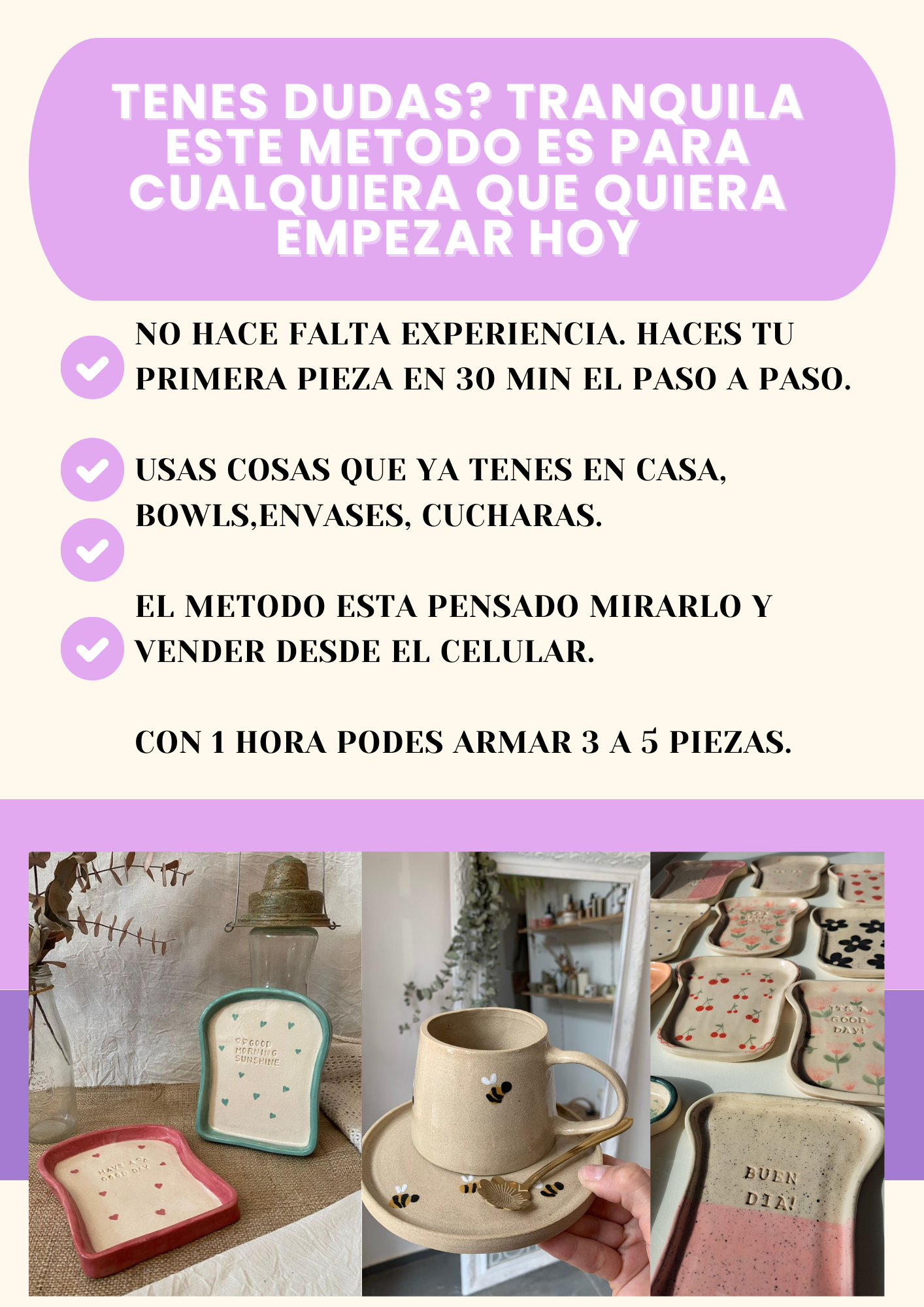 El ebook explica cómo empezar con materiales básicos, accesibles y fáciles de conseguir, sin necesidad de grandes inversiones.